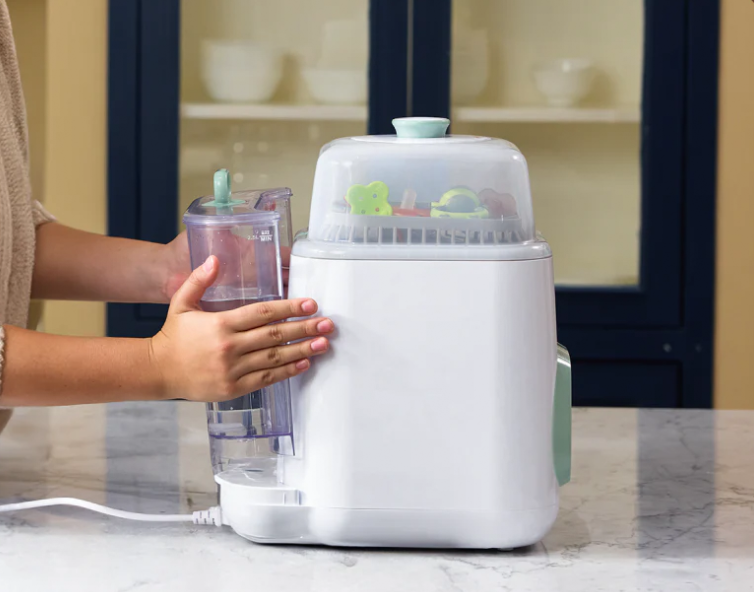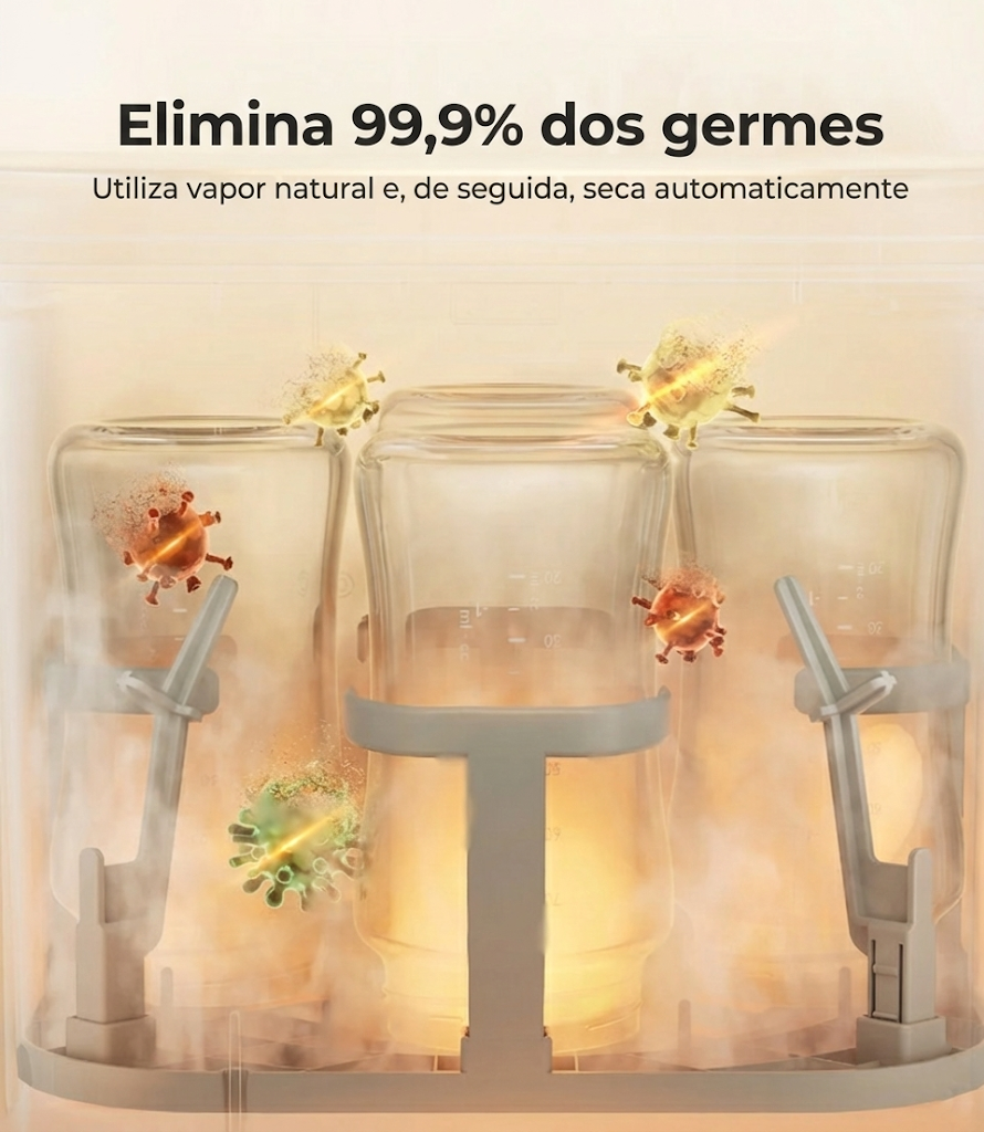 Permite manter biberões e peças sempre prontos para uso, com higiene superior ao método manual.