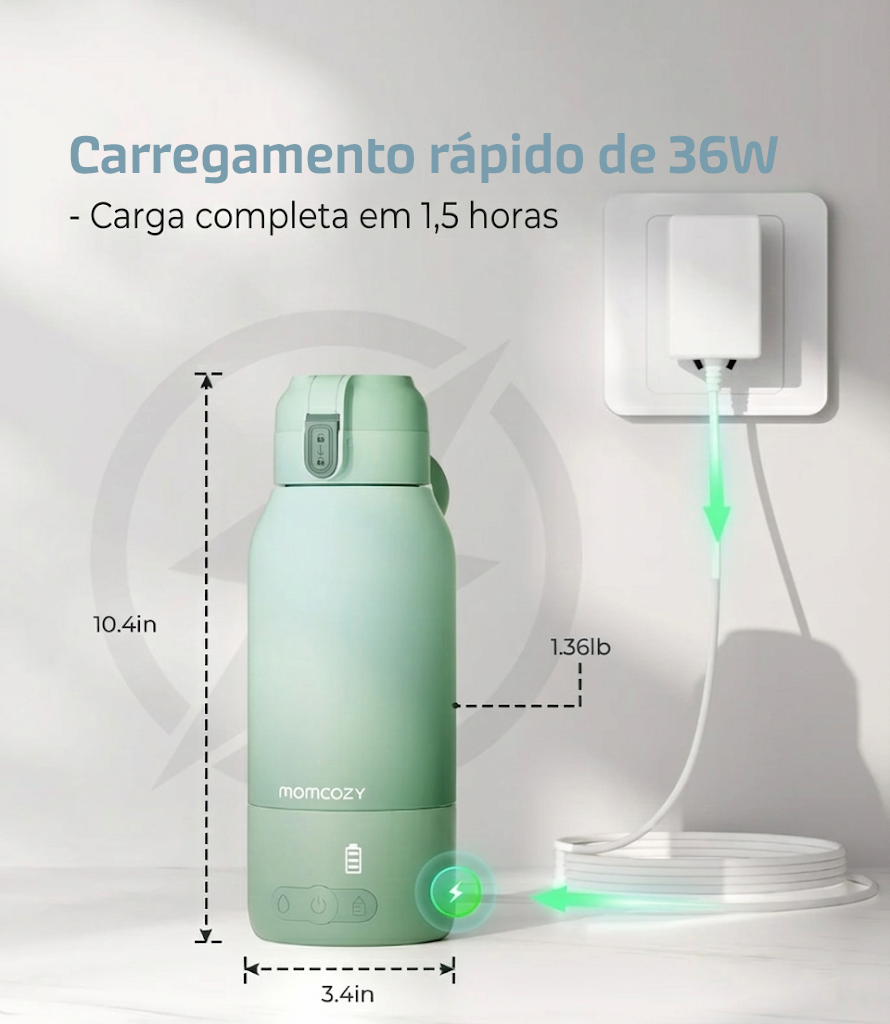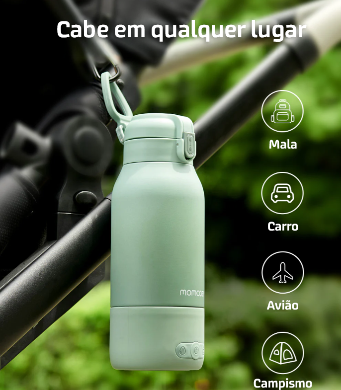 Aquece até à temperatura ideal de forma prática, sem necessidade de micro-ondas ou chaleira.
